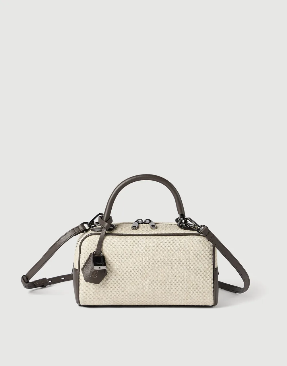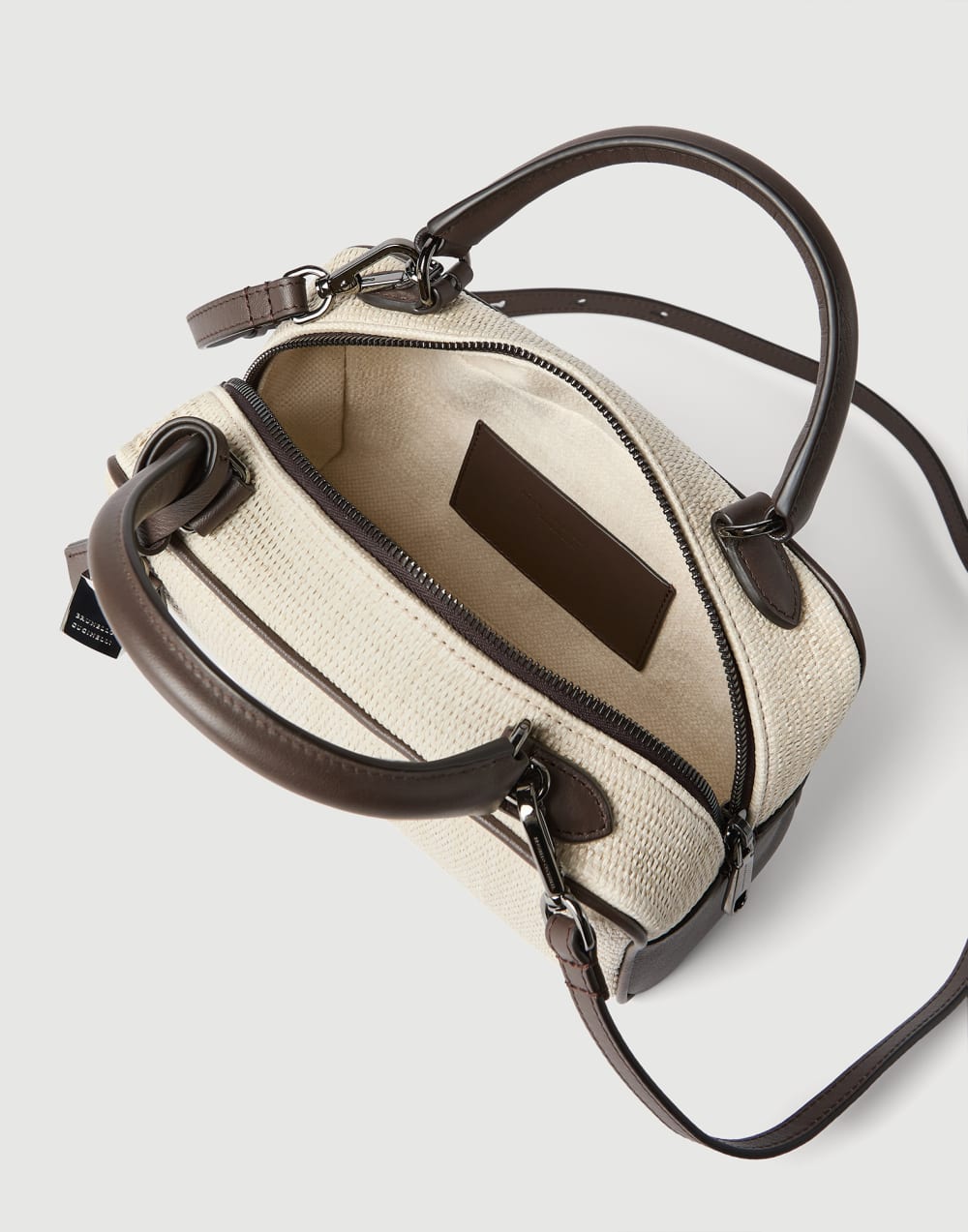 Borsa Boston Explorer piccola in rafia techno e pelle- Brunello Cucinelli