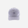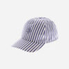 Cappello da baseball realizzato in popeline di puro cotone con fili e battute che donano alle righe una particolare definizione. Lavorato con uno speciale finissaggio che dona alla texture una mano più morbida e calda.