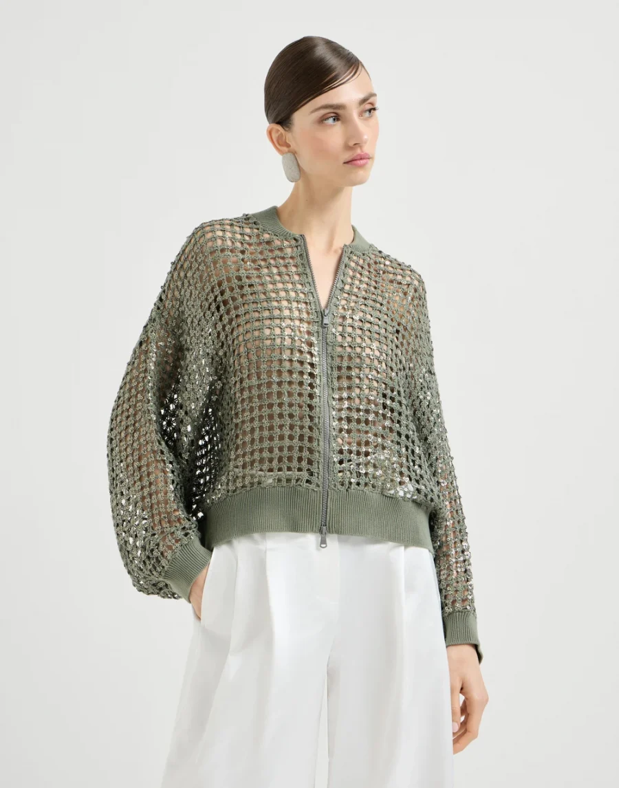 Cardigan Dazzling Net Embroidery in seta e lino – Brunello Cucinelli