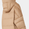 Piumino reversibile in drap di puro cammello zibellinato trapuntato a righe personalizzato con logo Max Mara ricamato sullo sprone interno. Internamente è in taffetà antigoccia . La linea è over con coulisse regolabile sul fondo , cappuccio a coulisse e maniche lunghe . Chiusura frontale con zip a doppio cursore e tasche a filettone su entrambi i lati .