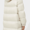 Piumino midi dalla linea dritta in tela tecnica antigoccia, trapuntato a righe orizzontali, con cappuccio a coulisse e tasche a filettone. Collo con cappuccio e coulisse , maniche lunghe e polsini elastici con alamari e chiusura con zip a doppio cursore .