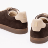 Sneakers in camoscio lavato dalle linee essenziali , contemporanee e versatili. La grana caratteristica del pellame spazzolato a mano esalta il fascino intenso delle nuance di stagione, mentre la fodera in pelle completa il comfort della calzatura con suola in gomma compatta e leggera.