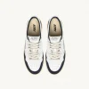 Questa sneaker da uomo è realizzata in morbida pelle bianca dall’aspetto autentico ed è rifinita con rinforzi in suede blu per un mix tattile e grafico deciso.