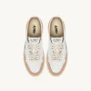 Questa sneaker da donna è realizzata in morbida pelle bianca dall’aspetto autentico ed è rifinita con rinforzi in suede rosa per un mix tattile e grafico deciso.