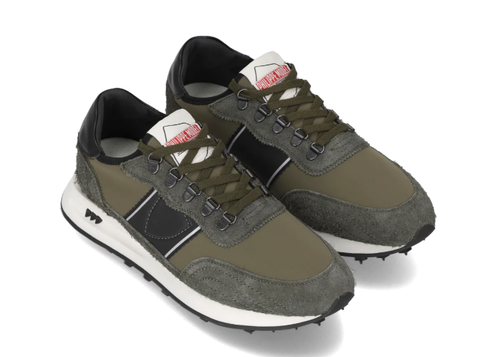 Sneaker running bassa con tomaia in tessuto tecnico e pelle scamosciata, con l’aggiunta di termosaldature e finiture gommate. Scudetto laterale impresso. Fodera in spugna di cotone e pelle, con soletta imbottita estraibile. Fondo in gomma ultra leggera con sagomature. Suola: 3 CM