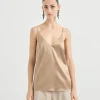 Le linee essenziali del top in raso di seta stretch si arricchiscono del pregio dei materiali Brunello Cucinelli. La texture fluida e lucente del tessuto asseconda l’eleganza femminile del capo, definito da una silhouette morbida e confortevole. Il top è completato da sottili spalline e scollo a V.